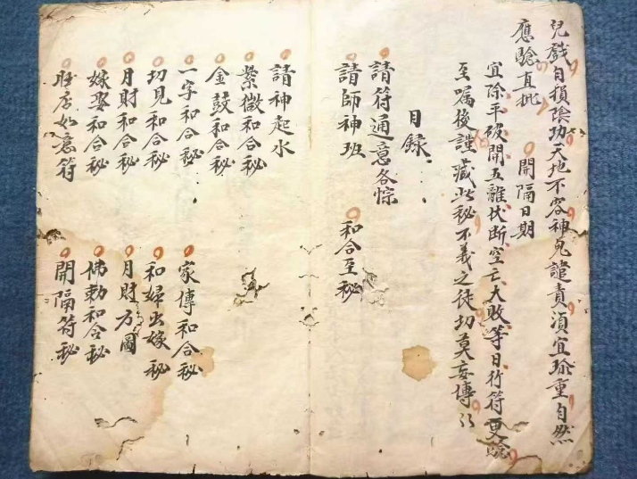 内含:请符通意各宗,请师神班,和合至秘,请神起水,紫薇和合秘,金鼓和合秘,一字和合秘,初见和合秘,月财和合秘,月财方图,嫁娶和合秘,旺店如意符,家庭和合秘,和妇出嫁秘,佛勅和合秘,开隔符秘等等!符咒