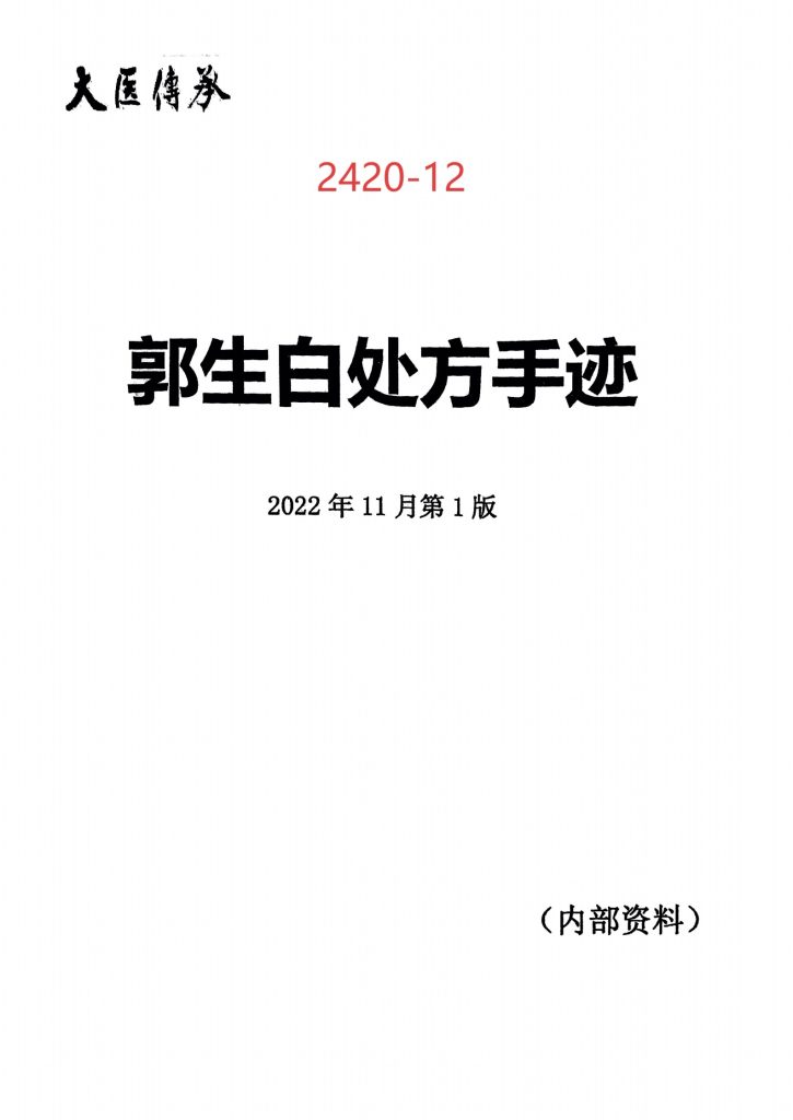 本书共收集郭老处方手迹 799张,根据来源可分为三类:575张手写处方来自郭老长子郭知理先生的收藏,为首次面世;43张处方来自郭老次女郭丽女士的收藏郭老于首都师范大学校医院的医案,也是首次面世;其余181张来自《大医传承》中展示的手写处方图片,非首次面世,感谢本能弟子们的提供。