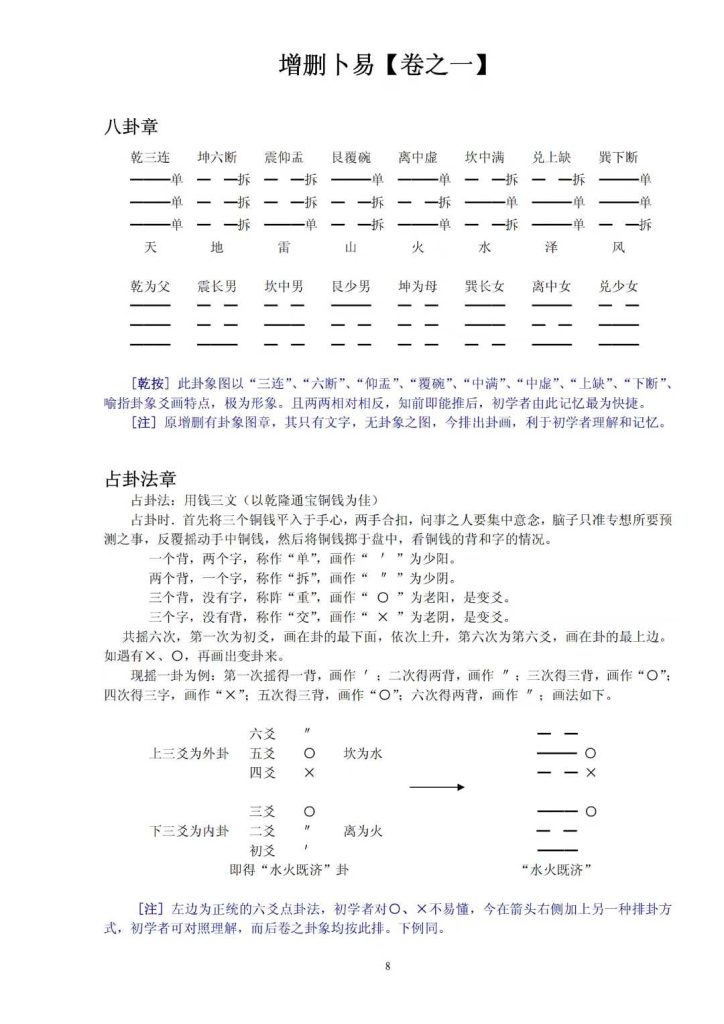 1、此书在清末影响极大,其最大特点为分类占断,卦例解析详尽,便于入门提高,且有他书不传之秘(断占诀窍)
