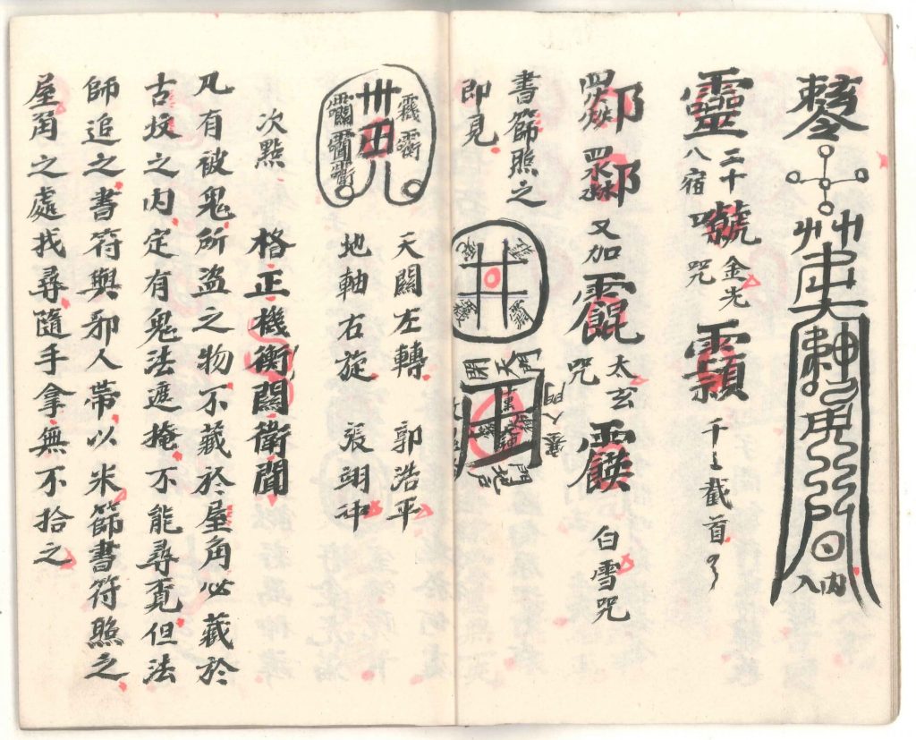 内容有:布壇式,茅山拷邪法宝,治顽邪抛砖打石符,一遇掷石鬼,又回石打鬼法,凡有邪鬼盗物追法,拷邪患法宝,治欲说不说符,治患迷糊不醒符,贴患房符,断后符,茅山黑罩法,灵官断后符,聚形,天皇符,山屍符,铁帐符,贴壁符,五方闭塞鬼路符,诸将符篆,五雷符,五猖符,金刚封狱符,避瘟符,北帝出瘟符,遣瘟符,瘟邪立狱法…