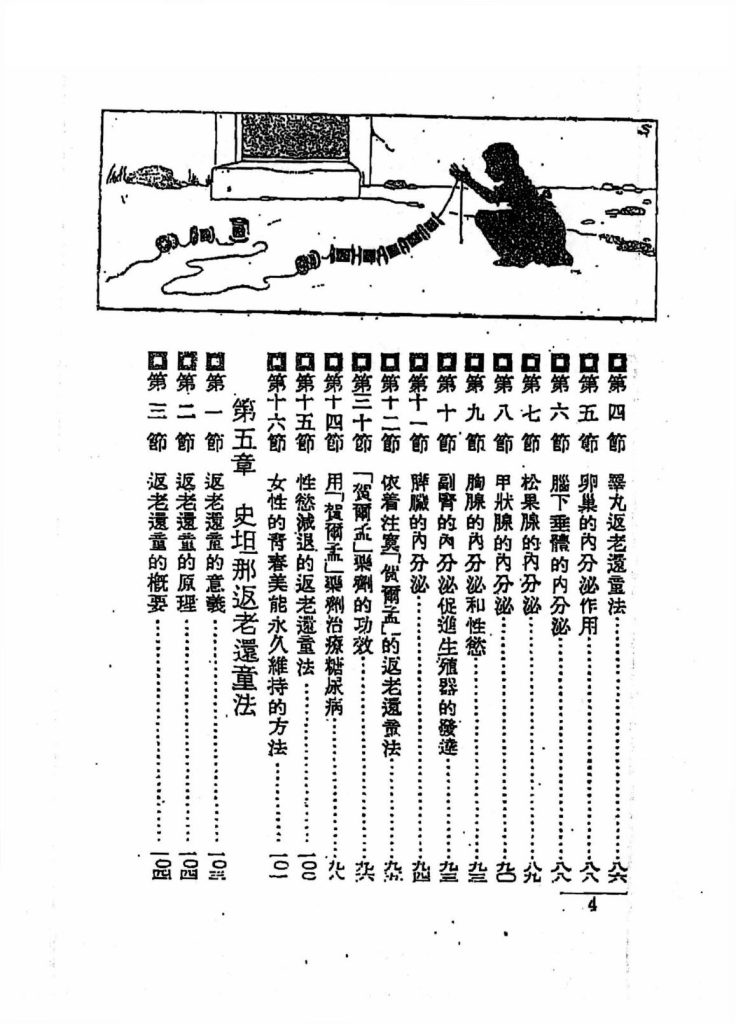 内含:不老的秘笈,头发、皮肤的返老还童法、骨骼衰老预防、视力减退预防、体质的注意、两性疾病的注意、内分泌返老还童、女性青春维持法、长寿秘诀等等