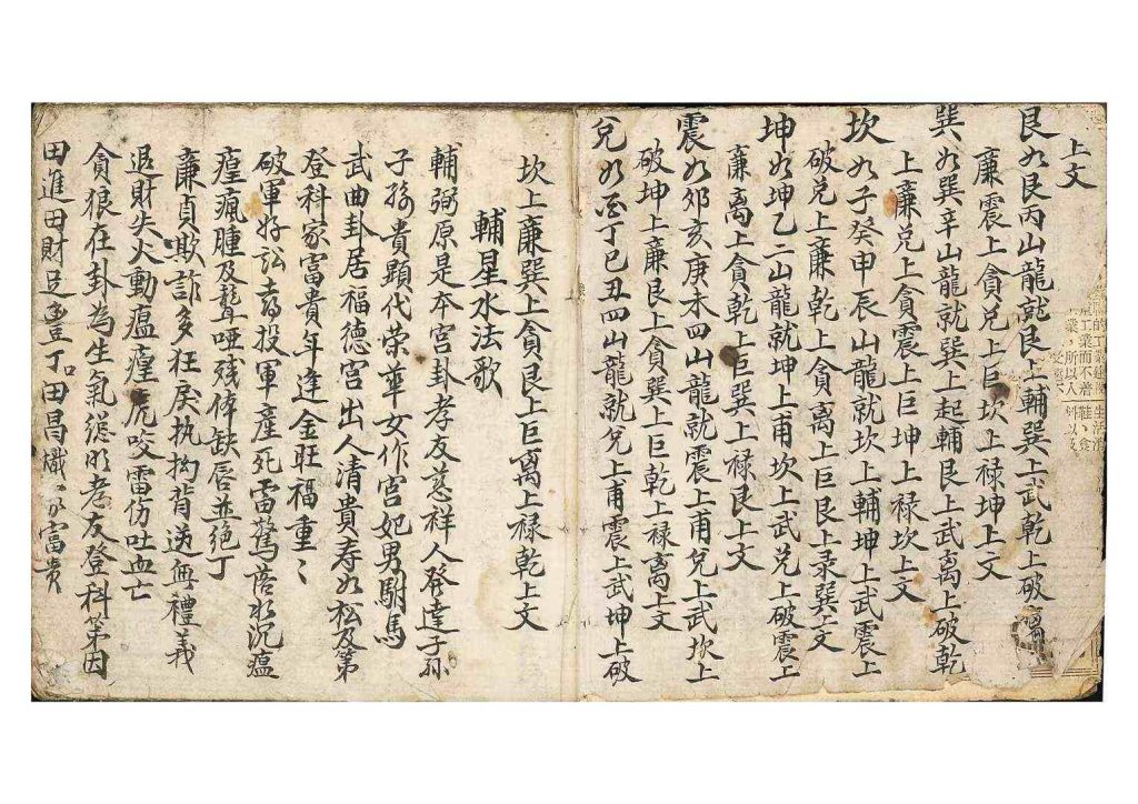 内容包括:辅星水法歌,长生水法歌(即九宫水法),挨星全图,三盘论,二十四山天盘格向、地盘格水、人盘格砂,喝形点穴,论砂,行年六道,论生蚁,论风吹,论缺补,论阳宅,看蚁法等。