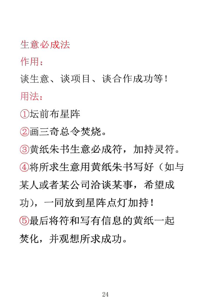 内容包含:值符法(利用奇门值符的能量)、增缘法、合婚法、求缘法、祈愿法、驱邪法、护身法、学业法、请财神法、生意必成法、化解牢狱之灾法、求财法、求子法、消灾法、治万病法、灵符加持灵力法、五鬼财降术、九天灯阵、还阴债、九天秘术、九天秘咒、接灵缘、九天补财库、九天解厄阵、九天玄术、催文昌、婚姻合和、九天玄女圣水解病灾、九天玄女除煞阵、九天玄术讨债阵等…