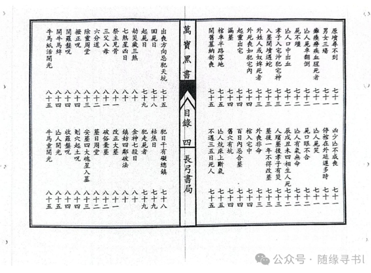 内容包括:六十甲子殃煞便览,逐月三十日镇,仄人化道,二十四节气镇物,祭主避忌,青龙华盖方,丧塟所忌凶方凶日,年八座重丧,天地大重日,麒麟凤凰神符,月吞马吞煞,天不覆地不载,年三牙九口神,天火狼藉,土主用事,四季千金煞,年地音神方,天牛守塚日,修坟取土,五呼神位歌,照山被破,原坟寻不到,入塟开坟遇蛇,棺入宅中,葬日周堂等内容。