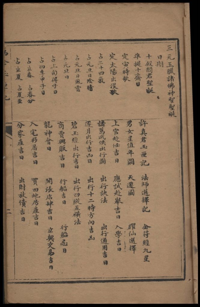 相传是东普道士许真人所著。其中内容包罗万象,从祭祀嫁娶、赴任、还有出行、开张、耕种,还有眼跳、耳鸣、占梦甚至是相猫纳犬等各种奇奇怪怪的占卜之术都可以在其中找到相关的资料。那时的人们不管什么事情都离不开这本书,当然也有过分依赖。