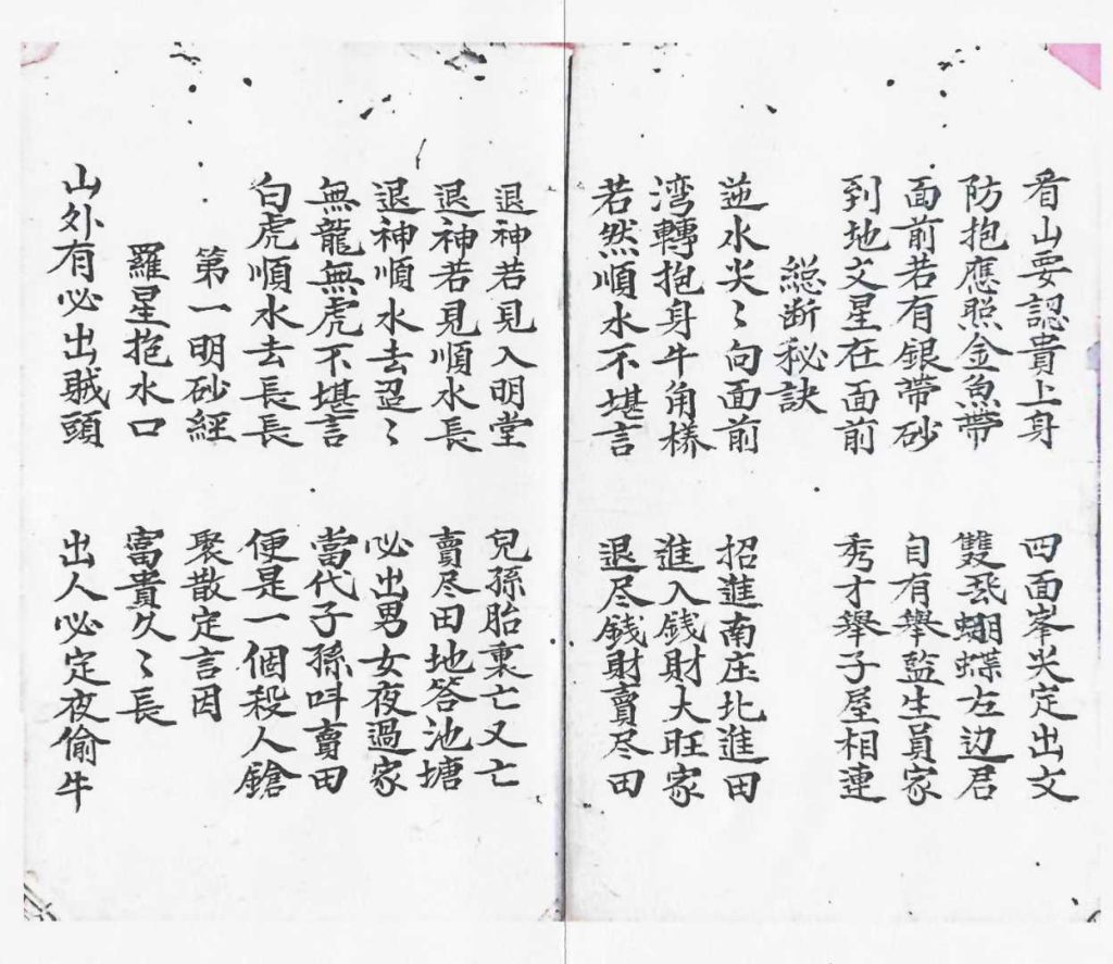 内容包含:龙断,总断秘诀,龙虎抄头诀,砂法歌,八曜歌断,中火星山结出富贵论,纳卦消水法,消峰论,天官符歌,五运六气歌,逐年五炁歌,七曜用事并断,五星穴法,凹风吹断,二十四山凹风阳宅断,论五星穴断,笔山论法,地理三十六问,五星开口断,形相断,分房断发,认龙诀,论坑风吹断,阳宅仙机开门放水诀,五行颠例歌,阳宅以正五行歌,谱序记,千金赋等。