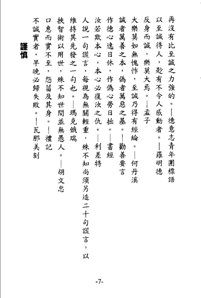 此书尽收古今圣贤及西哲名言。常阅此书,要能细味其言,深思其义,体会于心,见诸于事。如此,方登仁寿之域。佛家讲“依报随着正报转”。“依报是指人的生活环境、身体状况、事业家庭,“正报”是指人的道德心灵、所作所为。愿吾辈今人,熟思、借鉴、修习,成就幸福人生。