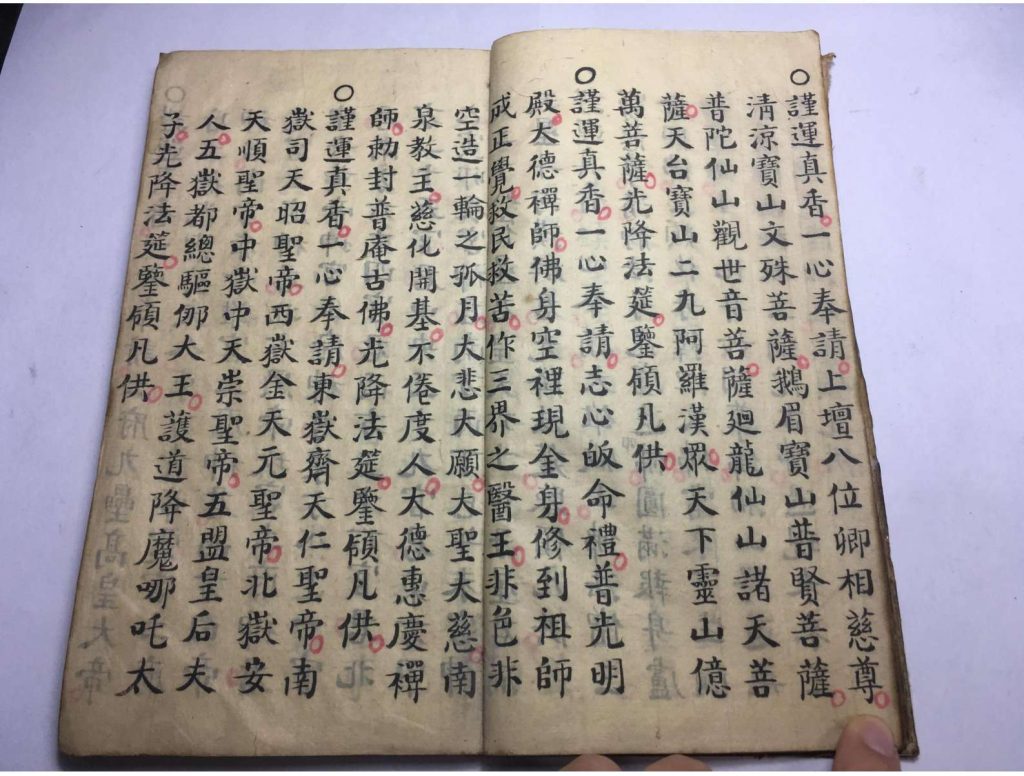内容:神诰法书、破秽掌、请下神书、太岁老君咒、天师真人咒、王元帅神咒、马元帅神咒、殷元帅神咒、赵元帅神咒、三十六将咒、五雷威神咒、三元将军咒、张五郎神咒、萨翁真人咒、申真人神咒、元皇法主咒、王母仙娘咒、六甲将军咒、熊氏夫人咒、梅山法主咒、药王真人咒、真武祖师咒、火官大帝咒、上元诰、中元诰、下元诰、十猖诰、普庵噉水法语一宗、盘古噉水法语一宗等等