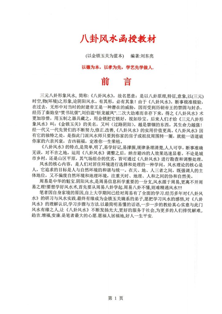 《八卦风水函授教材》以金锁玉关为蓝本·刘东亮