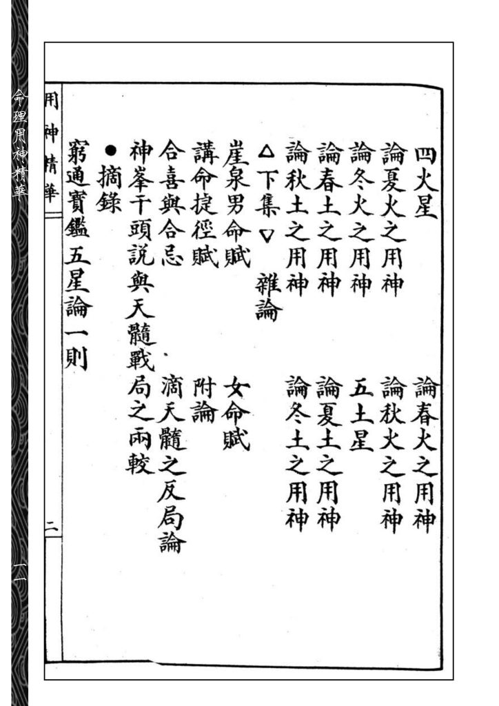 此书上下两卷。 鉴命不看格局,仅以日元调候扶抑为凭。皆以正格着手,直指用神喜忌,具有普遍规律性。可使入门自学者,有迹可循,有法可依。