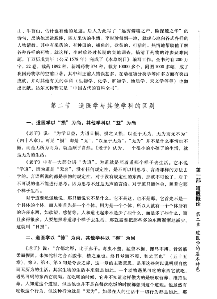 本书是高等医药院校道医学首批试用教材,共分五部。分别从道医概论、道医的神学思想与神治体系、道医产生的历史条件、道医代表人物、道医基本流派等五大方面对道医文化进行了整体研究,系统阐述了道医学体系、技术及其在当代社会中的重要价值,较完整地再现了道医学的全貌。因其突破了以往从单一学科研究医学的局限,集道家、道教、哲学、史学、文学、医学、生命学、养生学之智慧,以老子《道德经》的思想,在多方面学术上作出了深入的探索。