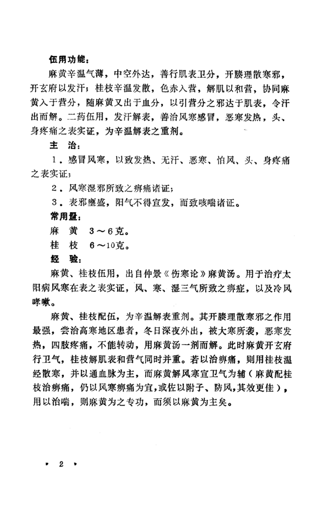 对药、单位功能、伍用功能、主治、常用量、服用法、经验。