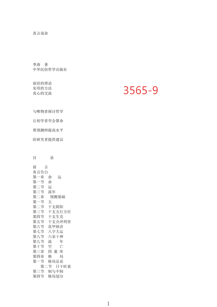 《真言说命》所载理法,是经过实践验证、具有普遍意义的高级理法:只要依法施为,您会对自己预测的准确性感到吃惊!这就是高级理法的魅力所在!著书立说要讲品性,要么别说,要说就说真话、说实话。我不想抨击别人,也不想标榜自己,读完本书,您自会给我一个公正的评价。