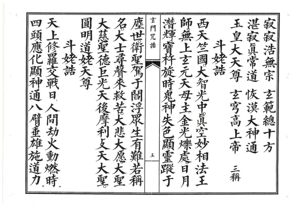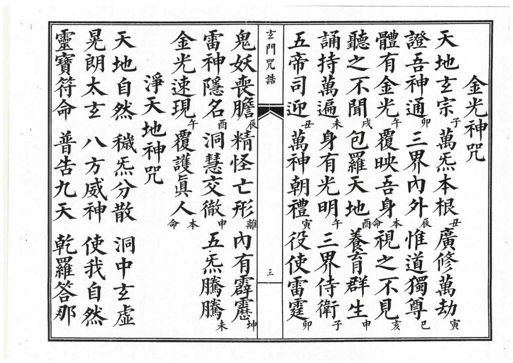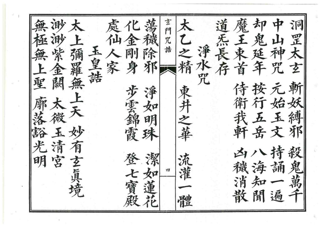 内容有:净身咒、净心神咒、净口咒、安位咒、万灵咒、土地咒、金光神咒、净天地神咒、净水咒、玉皇诰、斗姥诰、九天应元诰、混元雷祖诰等等。