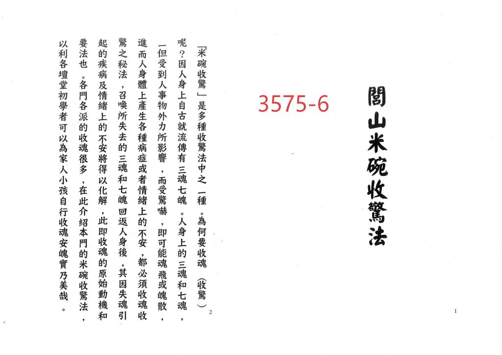 《闾山米碗收惊法》