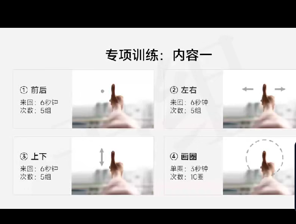 最后,再说明一点,这套方法只适用自然形成的近视,如果是由于眼部疾病、外伤或是近视手术复发形成的近视是不能用的。