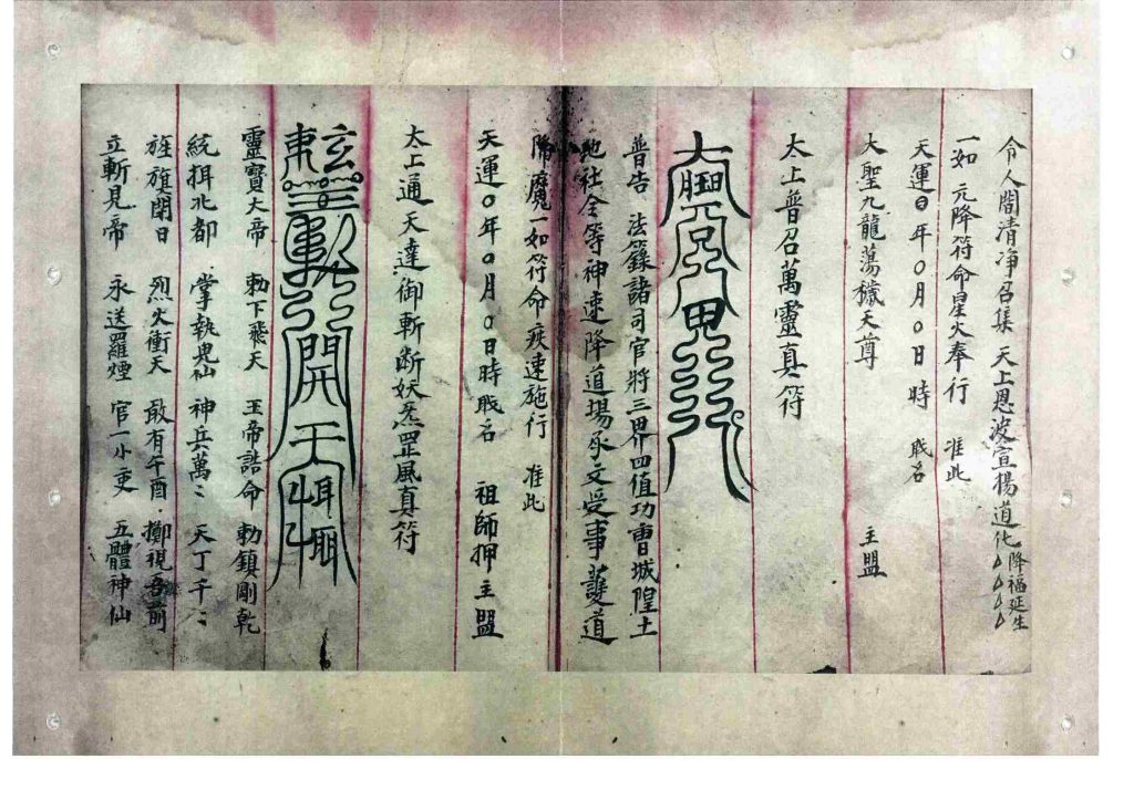 内容包含:祈晴牒、驻将牒、掩棺牒、借地牒、开壇牒、金马牒、请水牒、土地牒等。出湖北宜昌东湖县,记约122面,诸牒记五十多则,涉及阴阳二理万事皆用,诸宝符真符并录,牒文详细并及天曹元辰十二相名目、受生该经钱数等。