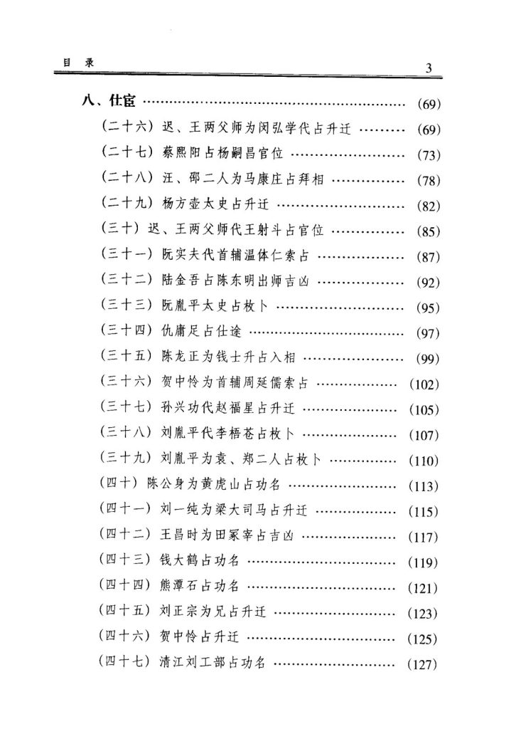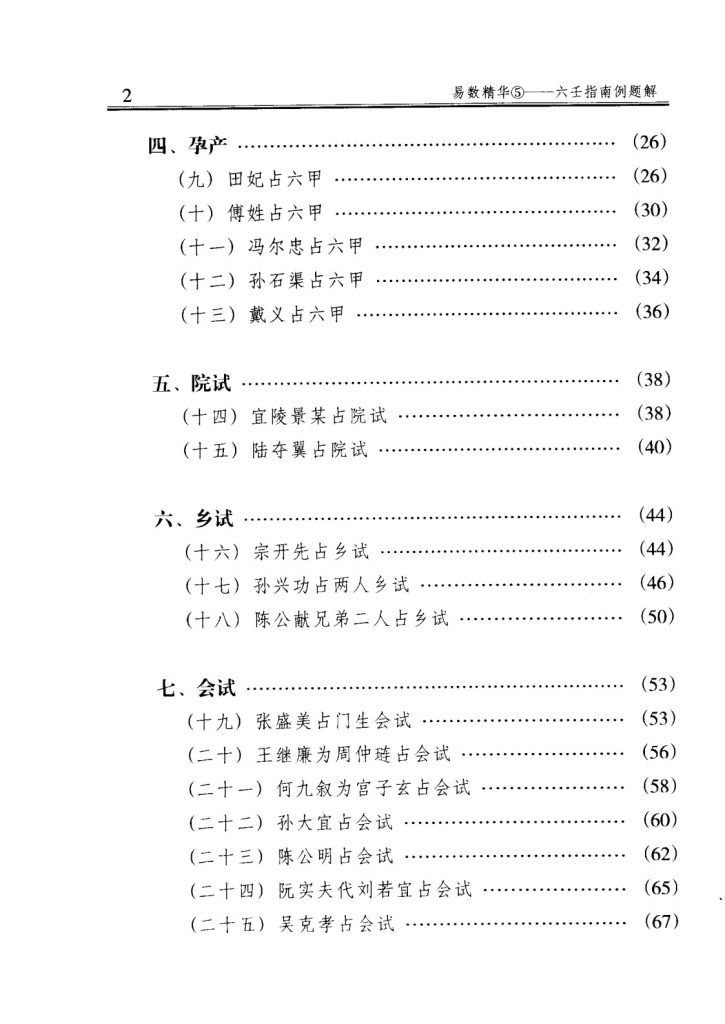 《六壬指南》共五卷,第一、二卷为注释《心印》《指掌》二赋,第三卷为六壬断法《会纂》,第四卷为占验例题,第五卷为校正神煞(第五卷为庄广之著,陈公献校)。第四卷所载占例一百二十五则,分为二十二个事类,其中大部分人和事都有史料可考,这部分内容除了术数学上的价值之外,也具有重要的史料意义,是术数学著作中所保存下来的可以考证正史的重要资料。