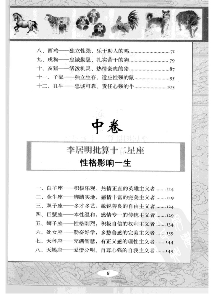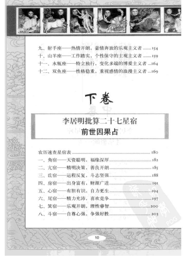 本书集合十二生肖、十二星座、二十七星宿三部巨著于一书,其内容不单占算百发百中,任何年纪的人士,只要翻翻看看,占算自己的一生命运已在其中,也可为朋友、爱人、家人占算。