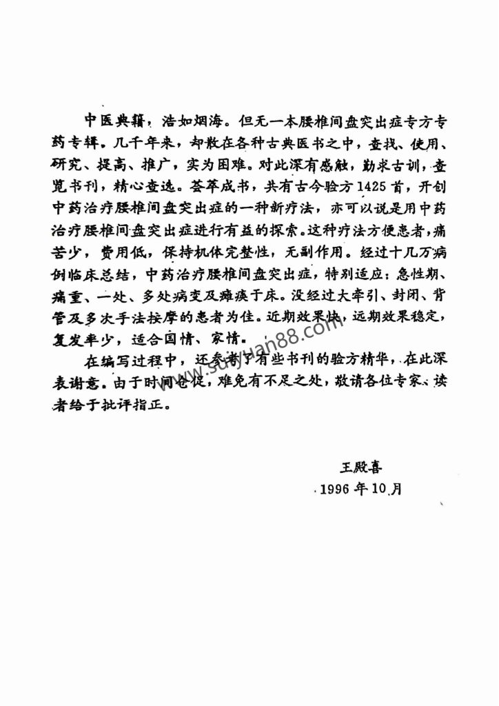 3743《中医治疗腰椎间盘突出症专病专方汇集》1996年
