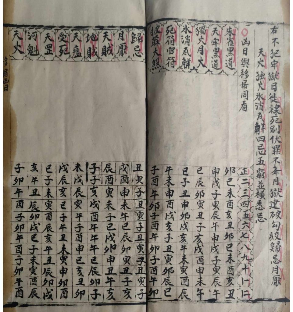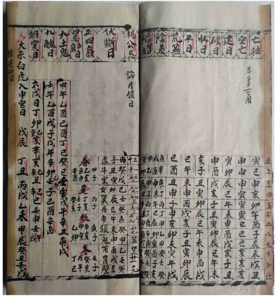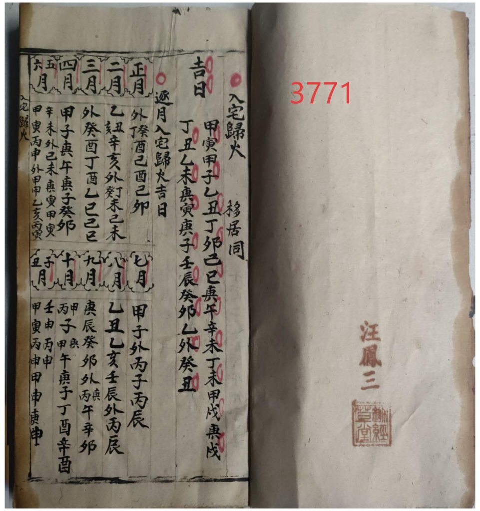 择日择吉日课,内容包含:入宅归火、移居凶日、造门吉日、动土吉日、画神吉日、半日符式、逐月入宅归火吉日、红嘴朱雀凶日、横天朱雀凶日、误入歌、火星凶日、天地空亡定局、鲁班刀尺、修造动土吉日等。