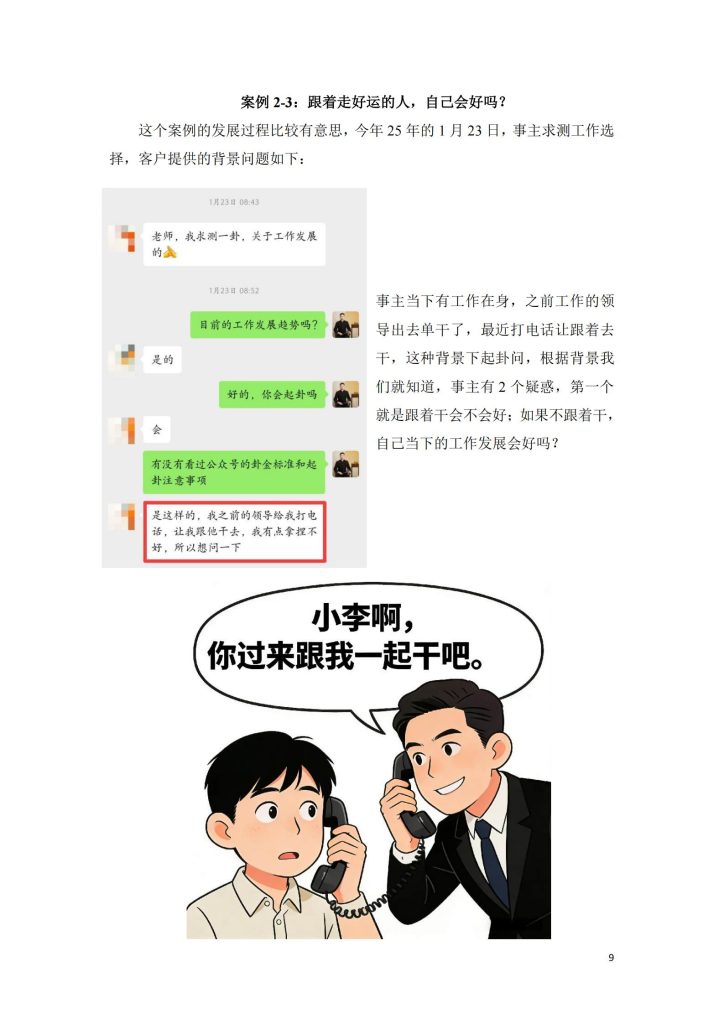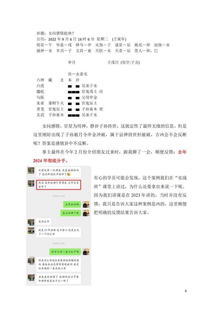 本书精选一部分案例作为六爻学者进阶研究,这部分案例会带上客户的微信问事截图、反馈截图。