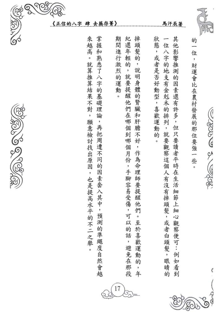 此书名为《去芜存菁》,除了公开马汗辰独特的八字学研究心得,并且综合了各派论命的方法,例如盲派的多种论命方法,神煞派的论命秘诀等等,其他还包括纳音算命,空亡论,墓与库,夹拱会,阳刃之说等,希望能与广大命理爱好者共同验证。无论是精论还是杂论,可取者,留之;不可取者,弃之。目的就是「去芜存菁」,继而达至正信!