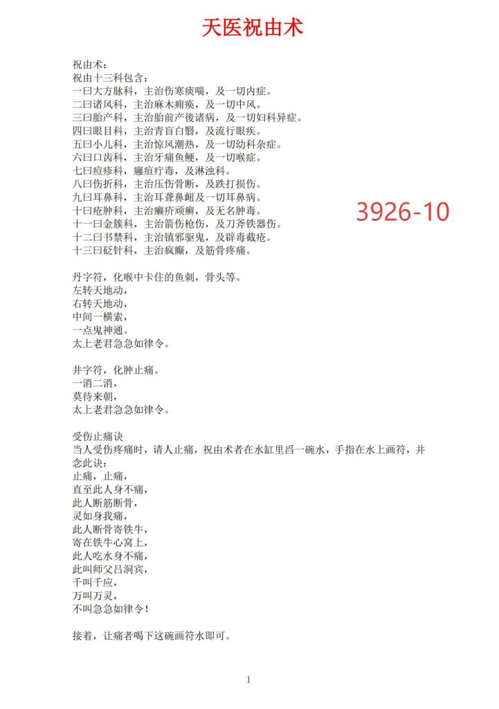 3926《药王天医祝由合集》祝由术