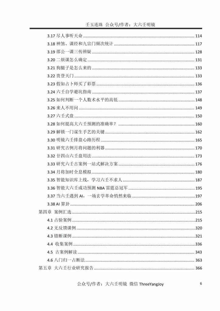 简介:六壬相关书籍,明镜著。本书主要包括涉害法真诀、六壬杂谈、实战案例汇选和六壬行业研究报告四部分内容,共17万余字,400余页,是我自2022年以来学壬成果的全面总结升级。涉害法真诀,收录了我对涉害法的突破性研究,提出了涉出害,结束了大六壬涉害法历史上千年争议。六壬杂谈,收录了大六壬明镜公众号自2022年以来的所有精选文章。案例汇选,包括70个占验案例、9个错断案例、1个无反馈案例、1个八门归一法示例、7个收集案例和15个古案例解读,共103个案例。六壬行业研究报告,包括对大六壬历史渊源、核心理论体系、现代应用、市场格局、行业参与者及未来发展趋势的深入研究。
