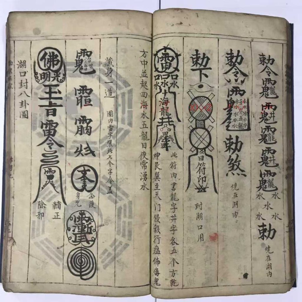 内容包括:发文书肃字下加令,烧文书牒上书诵地加令,秉佛水肃字下加令,报犯肃字下加令,解秽肃字下 加令一宗,上孝肃字下加令一宗,发丧祭车肃字下加令一宗,僧家发车用,飞煞一宗勅水碗,送煞一宗 ,送白虎一宗,埋官符一宗肃字下加令,竖枱一宗,靖宅一宗,大断后一套,回奉一宗,藏湖一宗,关 女人六甲一套,藏身一道,湖口封八卦图等…
