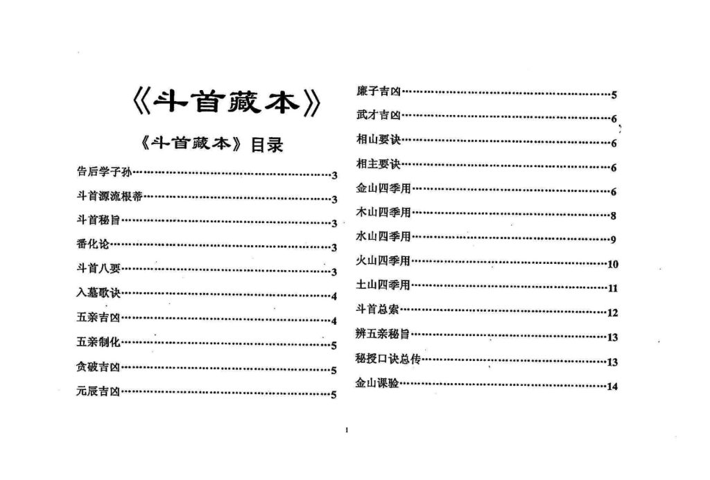 内含:斗首源流根蒂、斗首秘旨、番化论、斗首八要、入墓歌诀、五亲吉凶、五亲制化、贪破吉凶、元辰吉凶、廉子吉凶、武才吉凶、相山要诀、相主要诀、金山四季用、木山四季用、水山四季用、火山四季用、土山四季用、斗首总索、辨五亲秘旨、秘授口诀总传、金山课验等……..