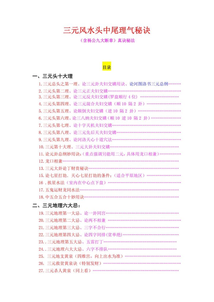 4067《元卦三元风水高级班秘本》杨公风水弟子班面授笔记·王易成