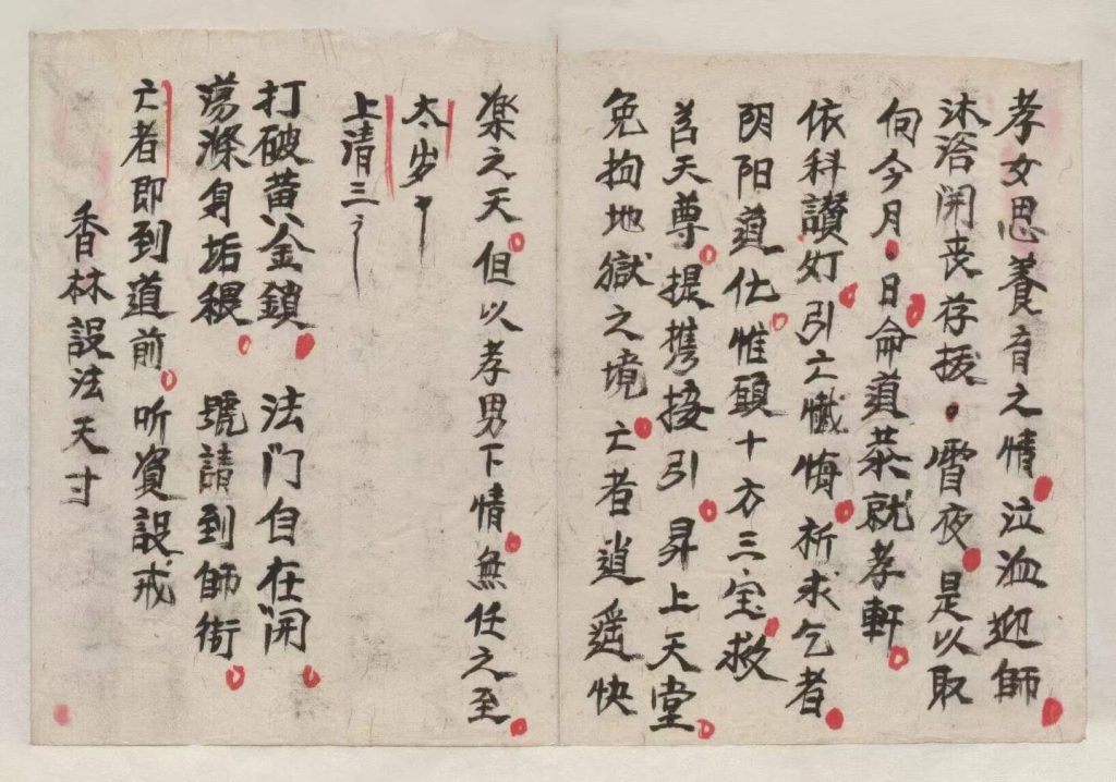 “封丧镇煞、超度亡魂”召请东岳大帝、酆都十殿、城隍、六曹等地府神祇降临坛场,作为法事的“证盟”,为亡魂担保,解除亡魂在地府的罪业枷锁。